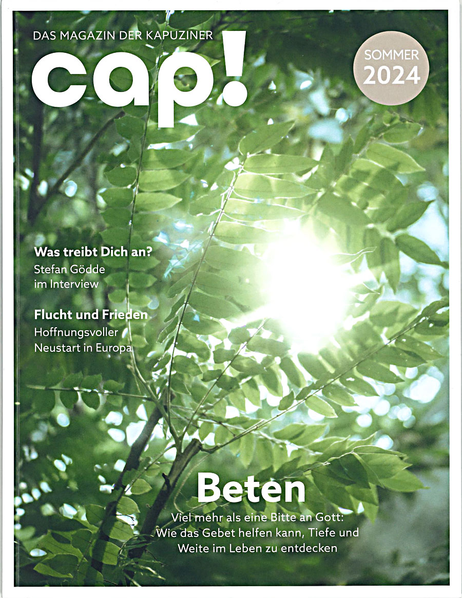 Anfang August ist eine neue Ausgabe von cap!, dem Magazin der Deutschen Kapuzinerprovinz, erschienen. Die Sommerausgabe steht unter dem Motto „Beten“. Sie können das Magazin auch als E‑Paper lesen.