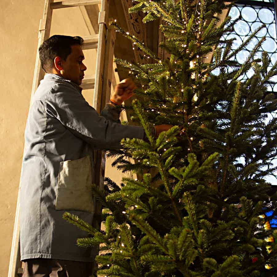 Br. Paul Mathis war im Wald und hat den biologischen Baum ausgewählt. Dann kam der Baum ins Kapuzinerkloster und wurde mit 4500 Lichtern und roten Kugeln geschmückt. Und da steht er nun der Christbaum. Vor Weihnachten gibt es einiges zu tun. Hier ein Bildergschichte zu einer Verwandlung. Allen froh…